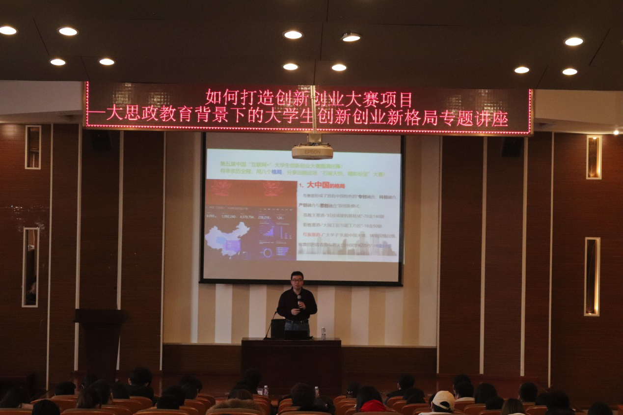 12月19日,創業指導中心在理工館學術報告廳舉辦了關于“如何打造創新創業大賽項目——大思政教育背景下的大學生創新創業新格局”專題講座,特邀請到在全國重點高校、北京市政府單位和國有金融投資企業擔任管理職務,長期從事文化金融領域的孵化與創投工作,現任中視澤宜投資創始人的楊波博士進行此次講座。此次講座為進一步深化創新創業教育,提高學生創新創業精神,推動各高校創客青年與創業導師互動交流。出席本次講座的嘉賓有中視澤宜投資創始人楊波博士、學院副院長兼黨委副書記葉振楠、創業指導中心老師以及各院系創業指導老師。