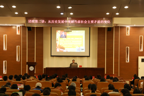 北京科技大學(xué)天津?qū)W院2017年青馬工程培訓(xùn)班暨第九期校團(tuán)校第二講于11月30日在理工圖書(shū)館學(xué)術(shù)報(bào)告廳舉行。中共天津市委黨校張立杰教授應(yīng)邀做“從歷史發(fā)展中理解當(dāng)前社會(huì)主要矛盾的變化”主題講座。