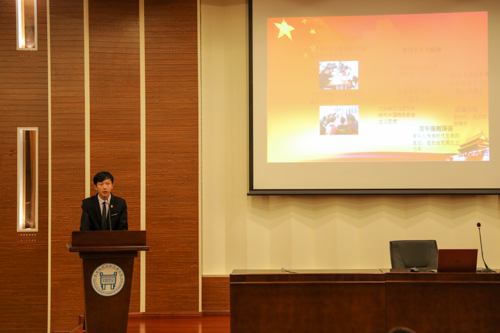 活動開始前,第九期團校師生向南京大屠殺遇難者同胞集體默哀。此次班級成果匯報分為“十九大”理論知識競賽和班級風采展示兩個環節。在“十九大”理論知識競賽環節,全體學員及班主任通過掃描二維碼進入手機網絡答題。此次理論知識競賽緊緊圍繞黨的十九大報告、習近平新時代中國特色社會主義思想等方面內容開展,營造學習貫徹黨的十九大精神的濃厚氛圍。班級風采展示中,團校14個班結合PPT及視頻分別從班級介紹、自主學習、社會調研、素質拓展等多方面進行展示。每個班級學生代表的演講、視頻、風貌展示都頗有特色,通過不同的角度將銳意創新、敢于擔當等新時代大學生骨干的精神面貌和團結奮進、青春活力等新時代青年大學生集體的風采最大程度的展現給大家,彰顯出團校班級的凝聚力和團干部蓬勃向上的朝氣。通過班級風采展示使學員們更深刻地體會到作為共青團員的光榮與職責。