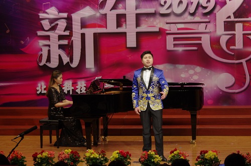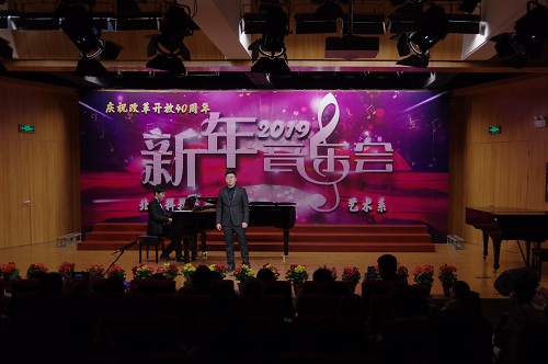 1月2日晚19:00,由北京科技大學(xué)天津?qū)W院藝術(shù)系主辦,藝術(shù)聲樂(lè)教研室教工黨支部、藝術(shù)鋼琴教研室教工黨支部、藝術(shù)學(xué)生黨支部承辦的“慶祝改革開(kāi)放四十周年暨2019新年音樂(lè)會(huì)”在弘藝音樂(lè)廳精彩上演。北京科技大學(xué)天津?qū)W院院長(zhǎng)王斌,黨委書(shū)記丁煦生,黨委副書(shū)記白亮、葉振楠、牛犁,財(cái)務(wù)總監(jiān)王俊敏,學(xué)術(shù)委員會(huì)主席宋存義,教務(wù)處處長(zhǎng)張建華,傳統(tǒng)文化研究院副院長(zhǎng)胡寶嘉,環(huán)境工程系主任汪群慧,外語(yǔ)系主任梁素芹,藝術(shù)系主任胡建華,科學(xué)研究處副處長(zhǎng)羅富臣,學(xué)生處常務(wù)副處長(zhǎng)田勇,法律系黨總支書(shū)記馮海燕,藝術(shù)系副主任林碧蕓及200余名師生參加了本次音樂(lè)會(huì),飽享了一場(chǎng)精彩絕倫的音樂(lè)盛宴。