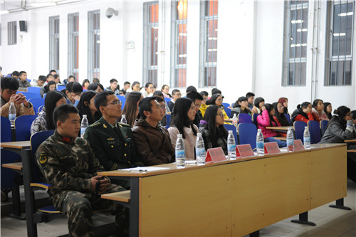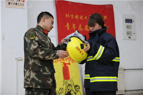 晚上7點,8教108教室,消防安全知識講座在大家熱烈的掌聲中正式開始。顧隊長向大家講解了火災發生的原因、安全用電的必要性、火災發生時逃生技巧以及如何撥打報警電話準確提供火場信息,并在現場教授同學們如何使用滅火器。隨后消防戰士王巳賦現場演示并教授學生消防服及配件的穿戴方法,并邀請了幾名同學親身試穿了消防官兵的“戰斗服”,穿著厚重的消防服,同學們深深的體會到了消防官兵的辛勞與不易。消防官兵的精彩講解與演示后,風趣的知識問答環節再次調動起了同學們的熱情,現場氣氛熱烈,同學們積極參與,知識問答環節顧隊長耐心講解相關知識。