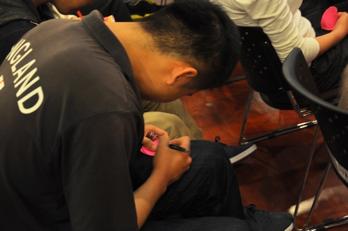 一段簡單的開場之后,孝心社張永康同學首先與大家分享了他對孝的理解。 “孝心,并非是長大后才有的責任,也并非是用金錢就能彌補”、“孝心其實很簡單,比如,為家里清掃一次房間;為母親倒一杯水;為父親捶一次背……”樸實的話語道出了他對孝的點滴體會。金融1103班班同學自己拍攝并制作的視頻記錄了他們對父母想說的話。孝心社劉曉通過自己的親身經歷告訴了大家“行孝不能等”這個道理,很多同學聽完之后都默默的擦起了眼淚。李翔同學演唱的《父親》也深深的打動了大家。部分同學的父母用電話錄音的方式表達了他們對于在遠方求學的同學們的掛念和祝福。全班同學和著鋼琴伴奏共同演唱了《燭光里的媽媽》,歌聲傳遞了同學們對爸爸媽媽的祝福?;顒幼詈?,同學們將自己對爸爸媽媽想要說的話寫在留言板上,一句句簡單的話表達了對父母真摯的愛。