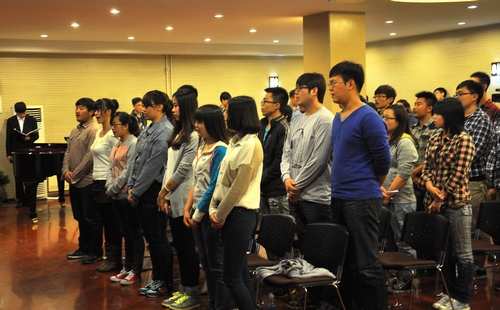 全班同學和著鋼琴伴奏共同演唱《燭光里的媽媽》