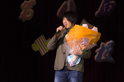 最終,藝術(shù)系吳春麗以93.60的高分奪得了此次比賽的冠軍,而亞軍和季軍分別由藝術(shù)系聶凡堯、陳南西獲得。黨委副書記白亮為獲得冠、亞、季軍的選手頒獎(jiǎng)。“最佳創(chuàng)意獎(jiǎng)”、“最佳表演獎(jiǎng)”和“最具人氣獎(jiǎng)”分別由土木系宋健,法律系陳紫辰,經(jīng)濟(jì)系侯林林、張格獲得,教務(wù)處處長尹常治,外語系主任梁素芹和藝術(shù)系主任胡建華為三位選手頒獎(jiǎng)。汪映彤、韓夢辰、李寧、侯林林、張格、楊智、陳紫君、甘景博同學(xué)獲得十佳歌手,基建后勤處副處長張衛(wèi)和學(xué)生處副處長葉振楠為其頒獎(jiǎng)。至此,北京科技大學(xué)天津?qū)W院第八屆校園歌手大賽暨2013年夏日文化廣場開幕式圓滿落幕。