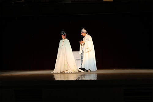 藝術(shù)教育中心常務(wù)副主任韓程羽,團(tuán)委宣傳部部長、外語系分團(tuán)委書記張?zhí)砩疲囆g(shù)系分團(tuán)委書記李洋,藝術(shù)教育中心學(xué)生藝術(shù)團(tuán)指導(dǎo)教師盛鑫娜等500余名師生觀看了演出。隨著雷鳴般的掌聲響起,昆曲《西廂記》在金沙城js93線路檢測中心拉開了帷幕。