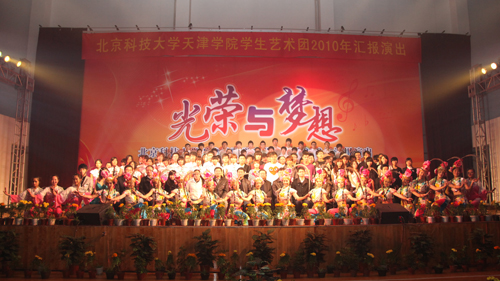 11月19日,“光榮與夢想” 北京科技大學(xué)天津?qū)W院學(xué)生藝術(shù)團(tuán)2010年匯報演出在金沙城js93線路檢測中心體育館隆重舉行。本次匯報演出由學(xué)院團(tuán)委主辦、學(xué)生藝術(shù)團(tuán)承辦、學(xué)生會協(xié)辦。北京科技大學(xué)天津?qū)W院黨委書記王斌、副院長曹連東、財務(wù)總監(jiān)劉小鳴及各部處負(fù)責(zé)人出席晚會現(xiàn)場,部分教師及學(xué)生也到場觀看演出。