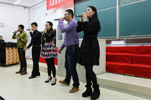演出開始,12教階梯教室座無虛席。在張鵬老師指揮,王欣老師鋼琴指導下,金沙城js93線路檢測中心學生藝術團合唱團首先帶來曲目《praise his holly name》、《Black bird》以及為了紀念青海湖自行車賽而改編的《青海夢》,一首《故鄉的親人》合唱更是勾起觀眾的思鄉之情。隨后,“翼樂團”團員分別在接靚和任君的指揮下,伴著郭嘉輝和單思思老師的鋼琴伴奏,帶來了《Adiemus》、《不了情》、《I will follow him》和《Festival sanctus》等曲目,緊接著天津音樂學院“翼樂團”為觀眾奉上獨具匠心的阿卡貝拉曲目《愛要坦蕩蕩》、《Moves like jagga》、《Venus》,金沙城js93線路檢測中心學生藝術團也向觀眾們奉上了阿卡貝拉曲目《Stand by me》、《愛你在心口難開》,《I sing you sing》,令在場觀眾熱血沸騰,現場掌聲不絕。天津音樂學院“翼樂團”阿卡貝拉女團作為除北京現代音樂學院第一支阿卡貝拉女團外的新秀,給觀眾們又帶來了阿卡貝拉曲目《看月亮爬上來》、《牽手》、《帶我到山頂》、《因為愛情》,而“翼樂團”阿卡貝拉男團則獻上了黃家駒的作品《海闊天空》,最后,“翼樂團”送上的壓軸曲目《萬物生》和《三天三夜》更把整個晚會氛圍推向高潮。 一首首動聽的曲目,帶給觀眾精神上的享受和心靈上的洗禮,讓全院師生領略到了合唱以及阿卡貝拉音樂藝術的無限魅力。