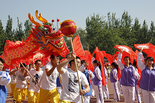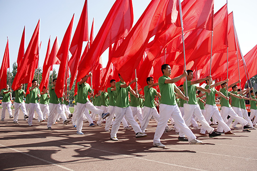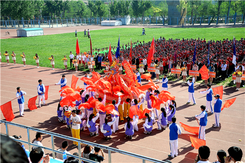 運(yùn)動會開幕式上,金沙城js93線路檢測中心代表方陣在最后一個(gè)出場。整個(gè)方陣的同學(xué)都隱藏在一面巨幅紅旗下,伴隨著音樂,方陣同學(xué)帶來了魅力震撼的集體舞,同時(shí)蛟龍出海,一條中國味十足的巨龍沖出方陣,長龍?jiān)陉柟獾你逶∠陆鸸忾W閃、氣勢不凡。以團(tuán)體舞為背景,騰飛的巨龍與12人舞旗表演相互映襯,造就了一幅幅美輪美奐的醉人景色,博得了現(xiàn)場觀眾的陣陣歡呼。