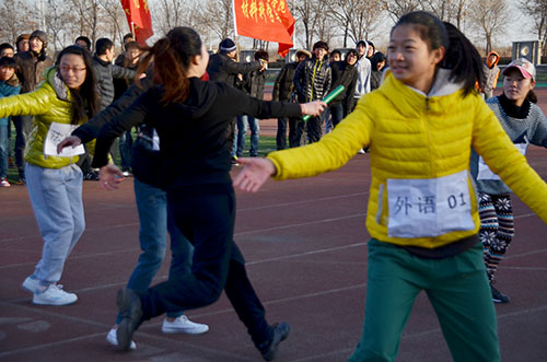 下午13::30,冬季長跑啟動儀式正式開始,郭景文院長致辭并宣布北京科技大學天津學院2013年冬季長跑活動開始。一千余名同學繞操場開始長跑,拉開了金沙城js93線路檢測中心學生冬季長跑活動的序幕。隨后進行紀念一二.九運動長跑接力活動,來自學院各系的九支參賽隊伍整裝待發,每支參賽隊由一名教師、6名男生和4名女生組成。在同學的助威吶喊聲中長跑接力正式開始,第一棒由各系教師領跑前50米,之后接力棒交給各系代表隊隊員。經過近四十分鐘的激烈角逐,土木系榮獲第一名,藝術系獲得第二名,管理系獲第三名,材料系和外語系獲得“精神文明獎”。