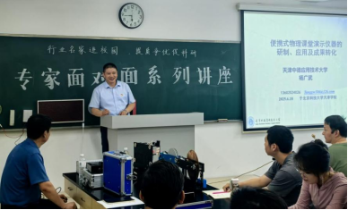 2025年6月18日下午,實(shí)驗(yàn)室信息辦黨支部聯(lián)合基礎(chǔ)部黨支部,在10教402開(kāi)展以“行業(yè)名家進(jìn)校園,提質(zhì)爭(zhēng)優(yōu)促科研”為主題的主題黨日活動(dòng),活動(dòng)特別邀請(qǐng)?zhí)旖蛑械聭?yīng)用技術(shù)大學(xué)楊廣武教授做了“便攜式物理課堂演示儀器的研制、應(yīng)用及成果轉(zhuǎn)化”的專題報(bào)告。