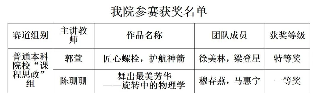 該比賽以“擎信仰之炬 揚理想之帆”為主題,旨在引領各學段、各類課程根據課程育人目標和教學要素,找準切入點,實施思政課程和課程思政教學設計,實現大中小學資源互通、教學融通、有效銜接的協同效應。比賽分校內初賽、網絡評審復賽、現場展示決賽三個階段,設立普通本科院校、高職院校、中職院校、中小學四個組別及思政課程和課程思政兩個賽道。其中,普通本科院校課程思政組每個高校推薦4名選手參賽,先對參賽作品(講課視頻)進行網絡評審,選出15+10共25名選手參加決賽,根據線上評審成績高低,其中15名參加現場展示決賽(郭萱和陳珊珊均入圍現場決賽),另外10名不參加現場比賽,直接認定三等獎。現場比賽的15名選手中,評選出特等獎2名,一等獎5名,二等獎8名。