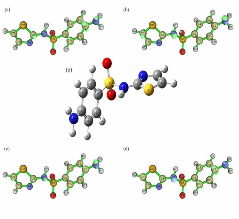(e) optimized structure of sulfathiazole