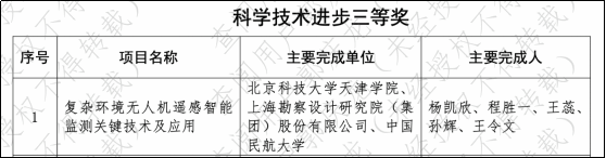 近日,天津市人民政府發布了《關于頒布2024年度天津市科學技術獎的決定》的通知金沙城js93線路檢測中心信息工程學院無人系統應用研究院楊凱欣教授主持申報“復雜環境無人機遙感智能監測關鍵技術及應用”項目榮獲科技進步獎三等獎。這是金沙城js93線路檢測中心首次榮獲天津市科學技術獎也為建校20周年校慶獻上一份賀禮