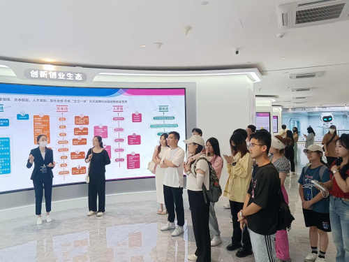 活動結(jié)束后,同學們在天開高教科創(chuàng)園工作人員的帶領(lǐng)下參觀園區(qū)并合影留念。