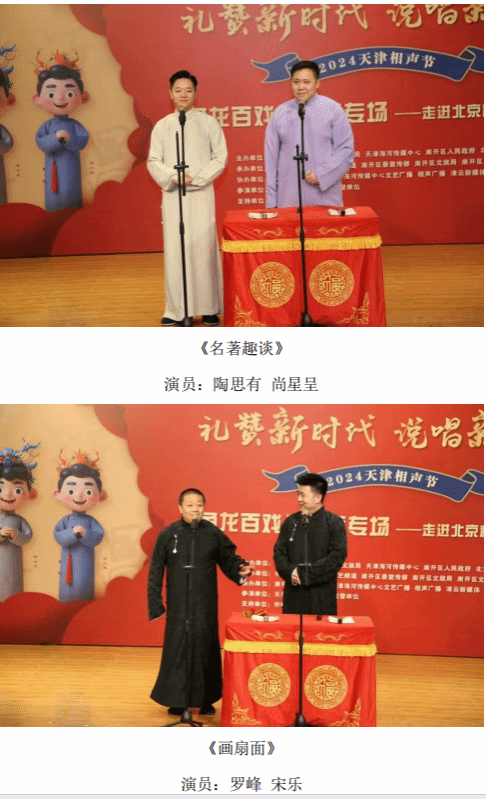 12月5日晚,“禮贊新時代 說唱新生活——2024天津相聲節”《魚龍百戲》相聲專場走進北京科技大學天津學院。此次活動由市委宣傳部、市文聯、市文化和旅游局、天津海河傳媒中心、南開區人民政府、北方演藝集團主辦,市曲藝家協會、天津廣播電視臺文藝頻道、南開區委宣傳部、區文化和旅游局、區文聯共同承辦。