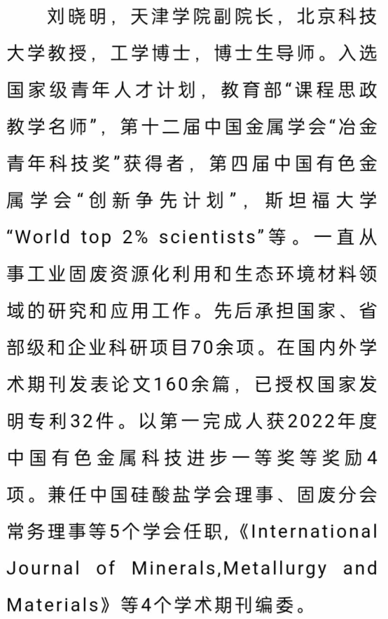 近日,2025年冶金科學技術獎授獎公告正式發布,天津學院副院長、北京科技大學劉曉明教授團隊的科研成果《電解錳渣中氨氮循環及多固廢全組分協同利用研究與應用》喜獲一等獎!