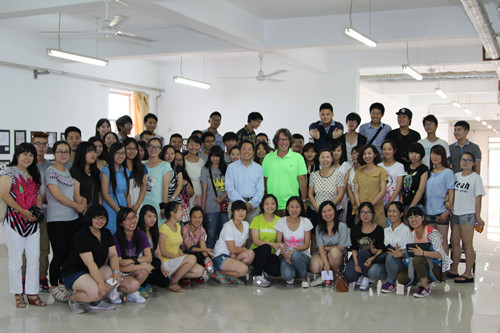 在講座中,大衛(wèi)·帕格爾(David Pagel)教授簡(jiǎn)短介紹了波普藝術(shù)對(duì)美國(guó)近代藝術(shù)的影響,用了98張具有點(diǎn)代表性質(zhì)藝術(shù)作品為師生詳細(xì)講解了美國(guó)近代藝術(shù)的變化。易凱教授則從價(jià)值觀、全球化的現(xiàn)實(shí)要求及個(gè)人的適應(yīng)等方面介紹了美國(guó)藝術(shù)教育的特點(diǎn),并且以自身的留學(xué)、生活經(jīng)歷為例,鼓勵(lì)大家走到外面的世界去開闊眼界。講座結(jié)束后,兩位教授與學(xué)生們了做了簡(jiǎn)短的互動(dòng)。