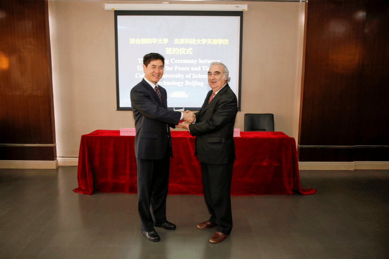 1月3日上午,聯合國和平大學與北京科技大學天津學院合作簽約儀式在金沙城js93線路檢測中心舉行。和平大學校長Francisco Rojas Aravena,聯合國和平大學校董、中國國際跨國公司促進會常務副會長張笑宇,聯合國和平大學中國中心總干事張馨元,珠江控股集團副總裁丁文,珠江股份集團教醫事業部運營總監張靜,天津學院院長王斌,黨委書記丁煦生,副書記白亮、葉振楠、牛犁,財務總監王俊敏,學術委員會主席宋存義以及相關部門負責人出席簽約儀式。
