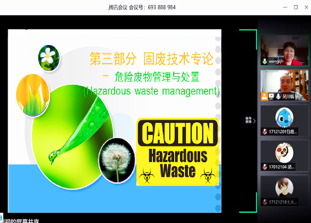 美國哥倫比亞大學高級研究員暨北京科技大學天津學院環境工程研究院院長魏振強博士因疫情原因沒法回國授課,但他堅持在美國為學生們講授核心專業課《水污染控制工程》,由于時差關系,魏老師經常要在美國時間凌晨1:30到3:05授課,堅持保質保量上好每節課。魏老師創新理念超前,將傳統的污染治理手段與大數據、人工智能、信息技術相結合,主動與信息系、無人機系老師合作,共同指導環境系學生申報了“智能垃圾箱”、“基于四旋翼無人機環境監測系統設計與研究”大學生創新創業項目,并分別獲批市級和國家級項目,為培養跨自動化、信息化及環保綜合性、復合型人才探索新的途徑。吳川福副教授也大量收集講課素材,認真備課,通過列舉眾多的危險廢物非法處置案例,激發了學生們將來作為“綠色衛士”的責任感和使命感。