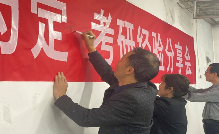 交流會后,各位領導、老師和輔導員也在橫幅上寫上了自己對2020級備考學子的祝福和寄語。考研之路,來路孤獨坎坷,去路光明輝煌。每一抹清晨的書聲瑯瑯,每一個夜晚的奮筆疾書,都是一部艱辛的奮斗史。祝愿2020級每個考研人都眼里有光,心中有夢,不懈努力,奔赴屬于自己的星辰大海。