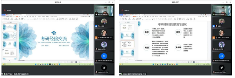 首先,宋作鵬與曲曉倩兩位同學分享了他們豐富的備考經驗,詳細的介紹了考研如何規劃、各科如何復習、作息如何安排、信息如何收集、課程如何選擇等方面的信息,為參加此次經驗交流會的廣大同學提供了幫助和指引。