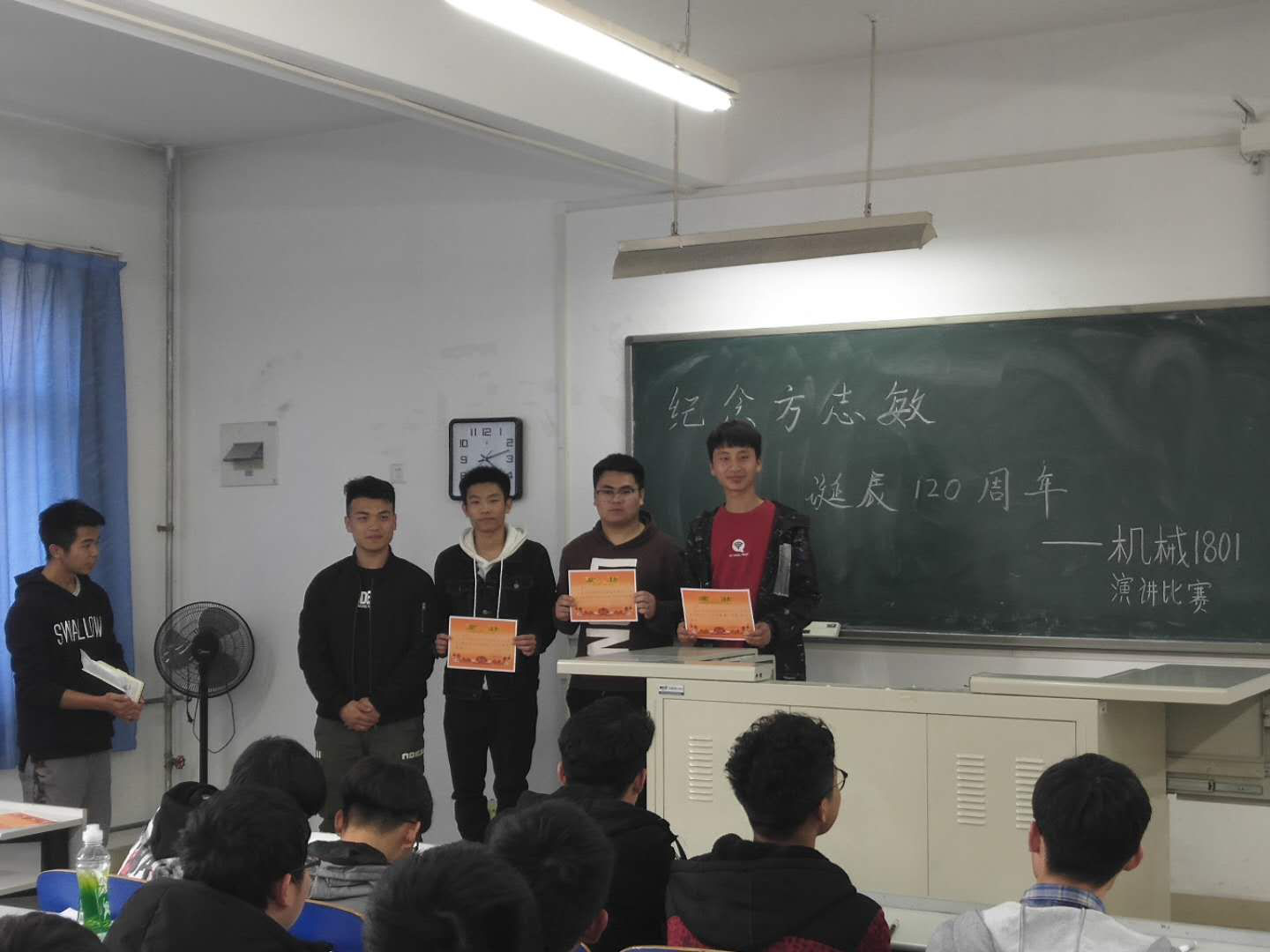 2019年4月12日下午3點30分,為追憶革命歷史豐碑,傳承高尚革命精神,機械1801團支部全體學生在8教207舉辦了“紀念方志敏烈士誕辰120周年”為主題的演講比賽。