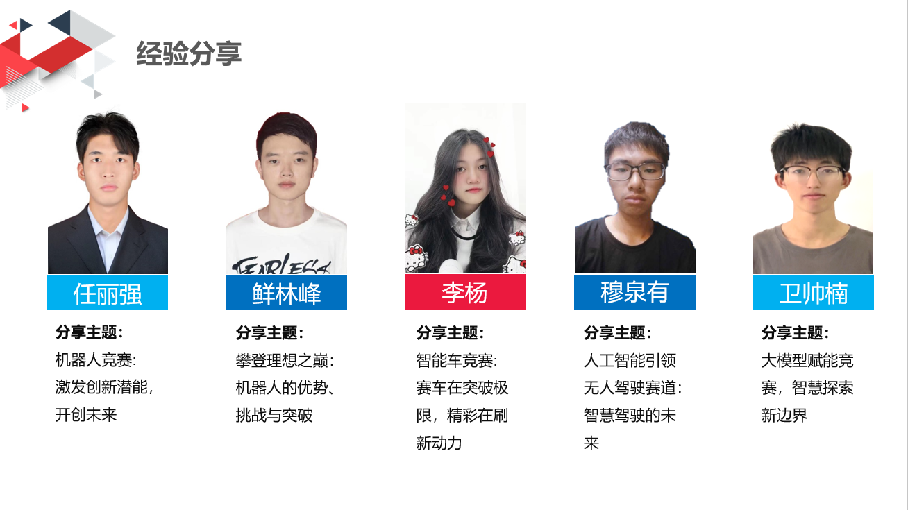 接下來,由5名同學組成的學生分享團,分別就華北五省大學生機器人大賽,“互聯網+”大學生創新創業大賽等賽事進行了競賽經驗分享。