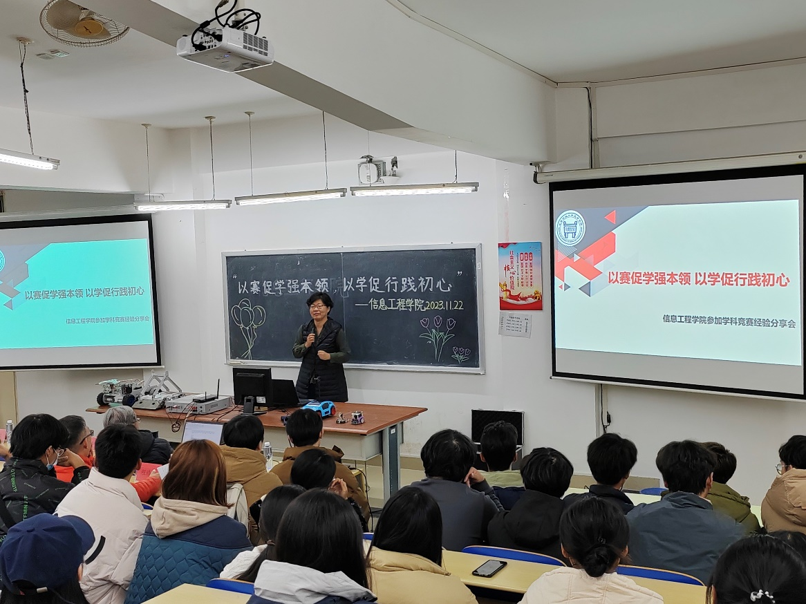 為建設優良學風,推進以賽促學,信息工程學院于11月22日在3教310階梯教室舉辦一場主題為“以賽促學強本領 以學促行踐初心”的學科競賽經驗交流分享會。