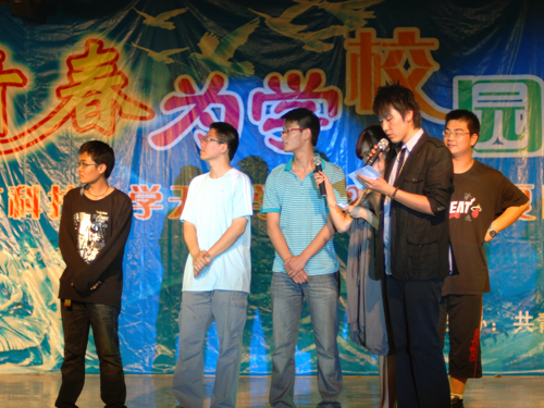 比賽間隙,魔術社的彭洋為觀眾帶來了神奇的魔術,引起了一片驚呼。休息之后,管理系堯健強和經濟系安韋共同合作的《校園新東方》登臺表演,清新的校園風味在其中盡顯。第四組是由“什錦菜”話劇社選送的《應聘》,講述了一群天差地別的人共同面對面試的故事,創意突出。隨后上臺的《山西家信》更是展現了濃濃的地方特色,經濟系的高鵬、楊凱贏得了觀眾的熱烈掌聲。