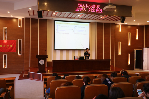 為讓同學(xué)們更好的認(rèn)識(shí)期權(quán),了解期權(quán),進(jìn)一步掌握與期權(quán)有關(guān)的知識(shí),2018年10月19日經(jīng)濟(jì)學(xué)院特邀劉宏教授在理工圖書(shū)館學(xué)術(shù)報(bào)告廳開(kāi)展以“深入認(rèn)識(shí)期權(quán)”為主題的知識(shí)講座。