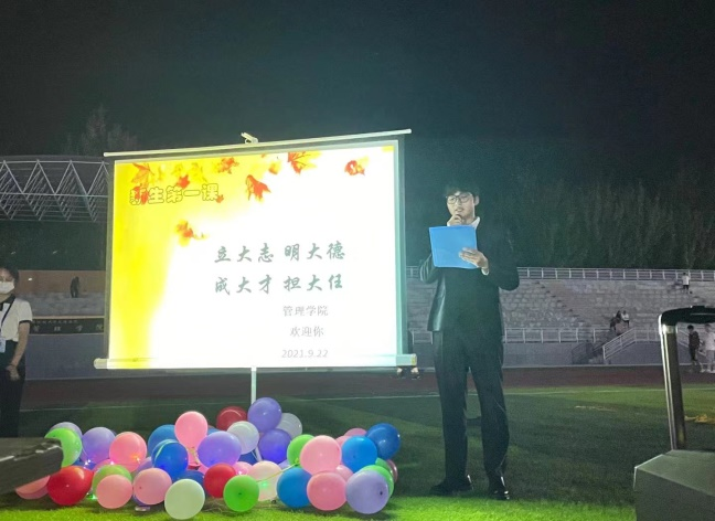 為了幫助2021級(jí)新生盡快融入大學(xué)生活,2021年9月22日晚19:30,管理學(xué)院2021級(jí)新生入學(xué)教育暨新生思政教育第一課在西操場(chǎng)舉辦。管理學(xué)院常務(wù)副院長(zhǎng)王賓容教授、管理學(xué)院黨總支副書(shū)記李光老師、管理學(xué)院教學(xué)副院長(zhǎng)兼財(cái)務(wù)管理教研室主任王曉欣老師、管理學(xué)院會(huì)計(jì)教研室主任任潔老師、管理學(xué)院辦公室主任張媛老師、管理學(xué)院分團(tuán)委書(shū)記耿天然老師以及管理學(xué)院全體教師、新生輔導(dǎo)員和全體新生參加了此次活動(dòng)。