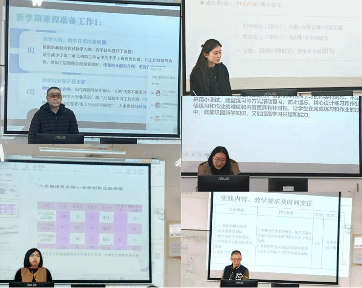教師說課開始前,王曉欣老師就開展教師說課活動的重要意義以及本次說課的活動安排進行簡要介紹。隨后,教師們按照課程團隊安排依次介紹上學期課程總結及新學期課程設計等內容。