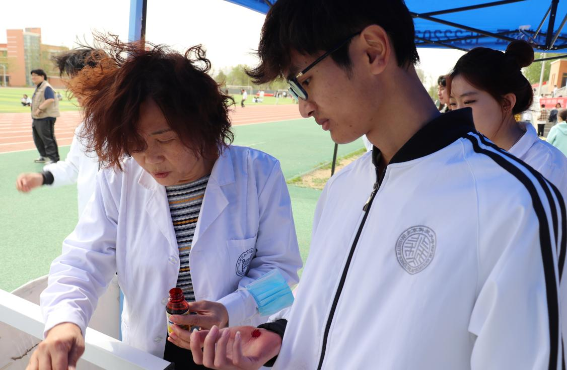 4月19日,師生代表們?cè)趯W(xué)院西操場開展志愿服務(wù)活動(dòng)。在校運(yùn)會(huì)比賽的各個(gè)階段,康復(fù)治療系的師生志愿者們都積極的為參賽者進(jìn)行拉伸指導(dǎo)和肌肉放松,確保每位運(yùn)動(dòng)員都能在安全和舒適的環(huán)境中恢復(fù)體力。康復(fù)治療系的師生們不僅提供了專業(yè)的拉伸服務(wù),還借此機(jī)會(huì)向?qū)W院師生普及健康運(yùn)動(dòng)和科學(xué)恢復(fù)的重要性。他們通過現(xiàn)場演示和講解,讓更多人了解正確的拉伸方法和運(yùn)動(dòng)后的恢復(fù)技巧,從而提高師生的健康意識(shí)和生活質(zhì)量。他們的專業(yè)知識(shí)和熱情服務(wù)得到了師生們的一致好評(píng)。