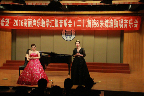 本場音樂會以“希望”為主題,不僅對兩位學生在三年來努力學習的成果做出了匯報,更展示了高麗聲樂教學的成果——高麗的學生在國內外各類比賽中獲獎,并在今年的畢業班中,高麗的兩位2012級學生,分別考取了天津音樂學院和泉州師范學院的碩士研究生。