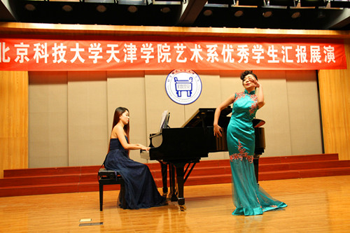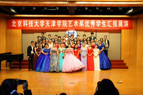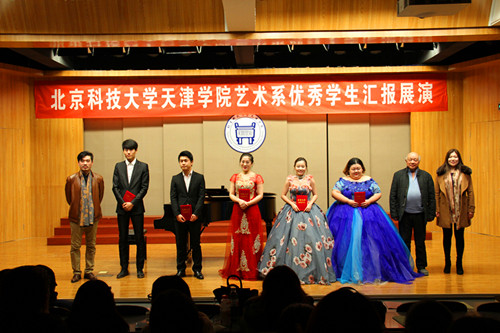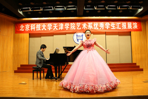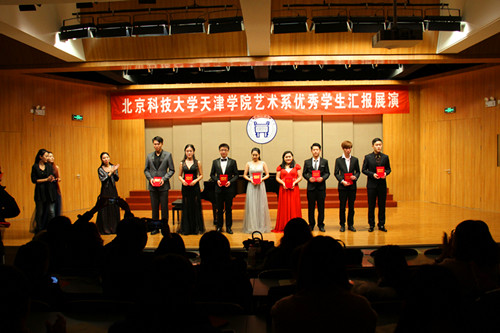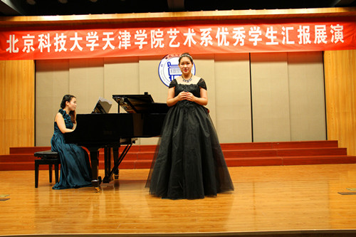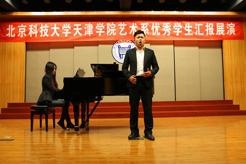 2015年11月11日18:30,北京科技大學天津學院藝術系優秀學生匯報展演在12教學樓弘藝音樂廳舉行。 在藝術系聲樂1401班王明明同學和聲樂1302班魏欣同學的精彩開場白后,演出正式拉開了帷幕。