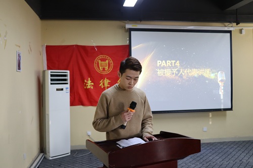 2016級(jí)輔導(dǎo)員陳旭發(fā)言。他對(duì)通過法考的同學(xué)們表示祝賀,分享了與2016級(jí)學(xué)生備考過程的感受和學(xué)生工作經(jīng)驗(yàn)。