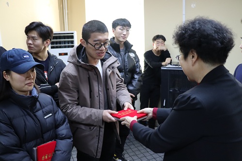 頒授儀式在熱烈的掌聲中拉開帷幕。首先,羅大欽老師宣讀2019年法律系2016級(jí)在校生通過法律職業(yè)資格考試名單:李明月、王絡(luò)琛、宋留洋、張昕、李雨霞、安星琦、劉瑞巧、羅珠、王晨璇、李天嬌、王文靜、程紅、郝云、唐霓銳、王鐘漢、羅詩(shī)弘、姚亞亞、付鑫秋、胡智國(guó)、張倩、達(dá)明磊、包凱宇等共計(jì)22人。法律系黨總支書記馮海燕、王蘭萍教授為他們頒發(fā)榮譽(yù)證書和紀(jì)念品。