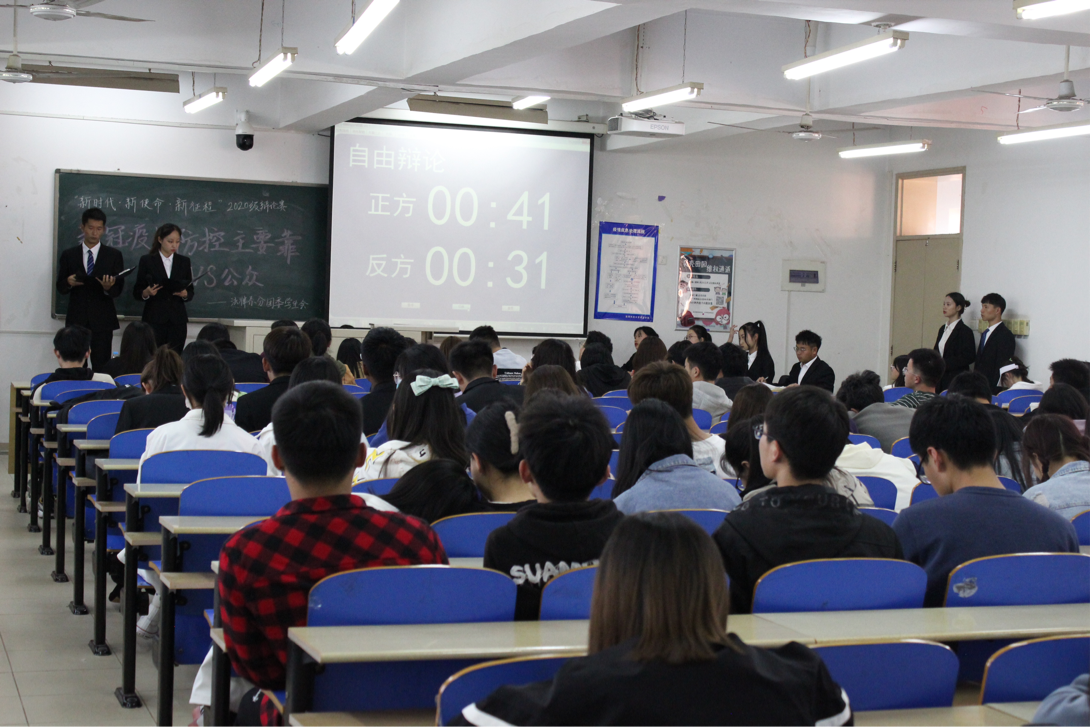 本次系列活動為三個階段,分別是初賽、復賽、決賽。比賽賽制為傳統的辯論賽賽制,分為開篇立論、一對一攻辯、攻辯小節、自由辯論以及總結陳詞。在4月14日開始的初賽,最終有四個班級晉級復賽,初賽的設置除了篩選復賽的優秀隊伍外,最主要的目的是讓新生了解辯論賽的賽程,體會辯論賽的魅力。緊接著4月28日在8教204舉辦的復賽比賽中可以看到各位選手脫去了初賽的青澀感,對比賽有了更明確的把握,在涉及到新冠疫情這樣的辯題中,辯手們能夠準確的引用例證,迅速靈敏的對對方的提問作出回答,臨場反應能力得到了極大的提升,特別是在這場比賽中不再有初賽中太過口語化的表達使得比賽更為專業和可觀。最終,決賽于5月12日在8教102由法學2004和2002展開對決,本次的辯題是哲學性的辯題“人生的美在于瞬間還是永恒”,哲學性的辯題在辯論中的難度最大,因為很難找到交鋒點,容易在辯場上形成自說自話的情形,但是這一場的選手帶給了觀眾一場十分激烈的比賽。正方的觀點基于永恒是由一個個瞬間組成展開論述,任何事物落腳到人的時候,客觀上只能把握當下,享受每一個瞬間,而過去不可改變,未來多變不能百分百把握,因此人生之美只能在于瞬間。正方的論述形成了一個完整的邏輯閉環,就好像厚實高大的堡壘,可見正方選手在私下準備充分;來到反方,反方選手從基點就推翻了正方的論述,他們從美這個角度去理解這個辯題,他們認為只有經歷過歷史洗滌、大浪淘沙下來還被人們所認識為好的東西才叫做美,因為每一個事物具有每個時代的人所處環境的片面性認知,因此就必須要經過長時間的考驗和不同人的體會,最終還能被稱作為美的東西才是美,所以這些事物必然要被附上時間的永恒特質。雙方的觀點爭鋒相對,在自由辯環節中展開了十分激烈的觀點碰撞,從我們身邊的每一個成功的小細節,到儒家思想這樣恢弘的理論,選手們在回答、提問和引例時都信手拈來,在辯論賽場上意氣風發,展現了作為一名成熟的辯手應有的氣場和態度,與此同時場下的觀眾也聽的津津有味,現場的所有焦點都聚集在辯場上,相信通過此次比賽,同學們都能感受到辯論的樂趣和它所能夠帶來的人生思考。