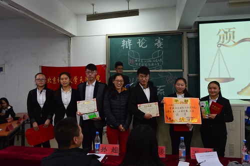 11月18日晚七點,法律系第十一屆辯論賽決賽在八教如期進行。法律系黨總支部書記馮海燕,系分團委書記閆謖,系教研室主任王哲,教師王超、張淑寧,輔導(dǎo)員孫超等老師出席并擔(dān)任評委。此次雙方以“律師應(yīng)當以當事人的利益為重還是國家法律為重”展開了激烈辯論。正反方通過各自收集的理論據(jù)理力爭,雙方毫不示弱,各自娓娓道來自己的觀點以及看法,辯論不分上下。隨著時間的流逝,緊張而激烈的辯論賽決賽也接近尾聲了,最終反方險勝。最后王哲老師與王超老師從不同的角度點評了這次辯論賽,鼓勵了大一新生的精彩表現(xiàn)。