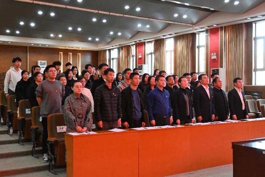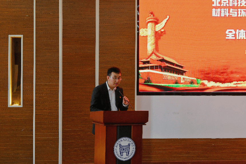 大會在莊嚴的《國歌》聲中拉開了序幕。張飛鵬代表材料與環境學院總支委員會向大會做了工作匯報,全面總結了三年來黨總支在黨建和思想政治工作、學科專業建設等方面的情況,并對材料與環境學院未來三年發展提出展望。