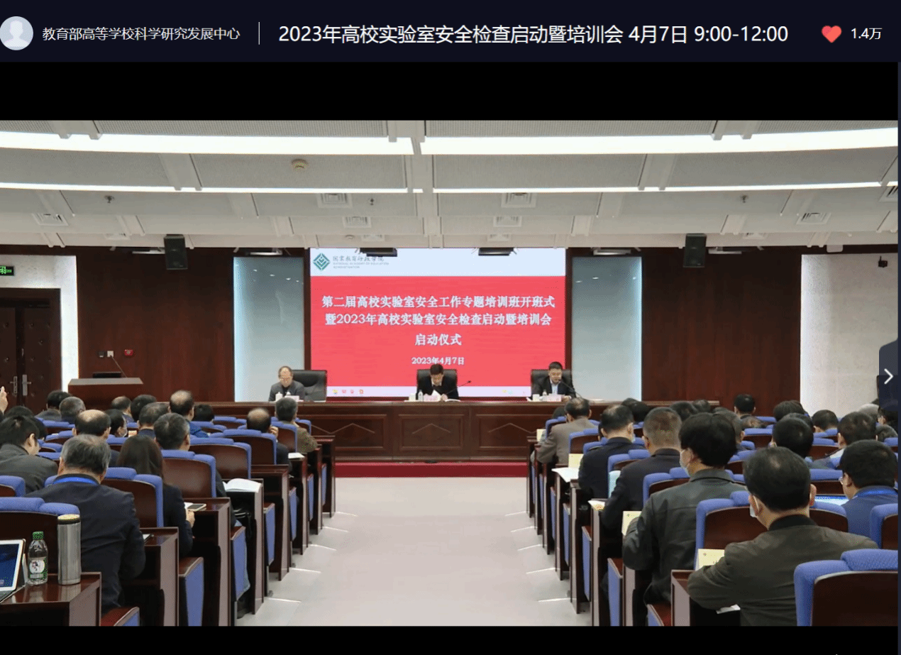4月7日上午,學(xué)院組織有關(guān)人員參加教育部科學(xué)技術(shù)與信息化司、高等教育司舉辦的2023年高校實(shí)驗(yàn)室安全檢查啟動(dòng)暨培訓(xùn)會(huì),院長丁煦生、黨委副書記趙志南參加培訓(xùn)會(huì)。
