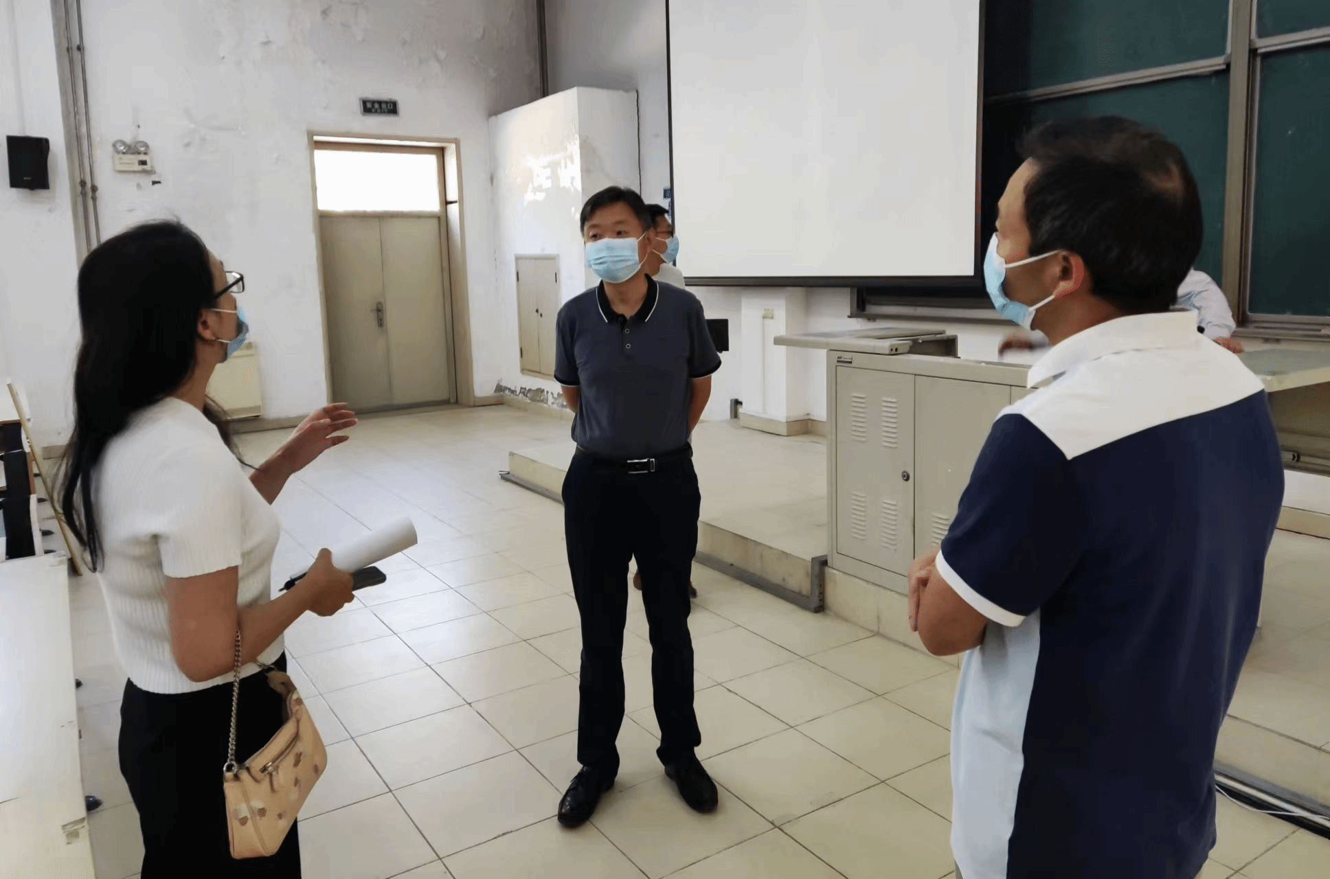 黨委副書記趙志南負責理工館、舞蹈排練廳的檢查。趙志南副書記對理工館教室、舞蹈排練廳的教學環境仔細檢查后,對教室環境、衛生條件和多媒體使用情況提出要求。