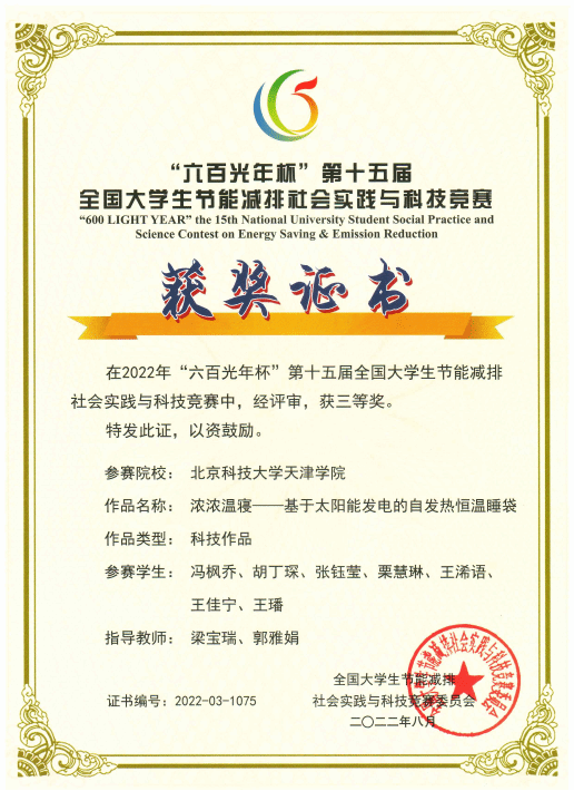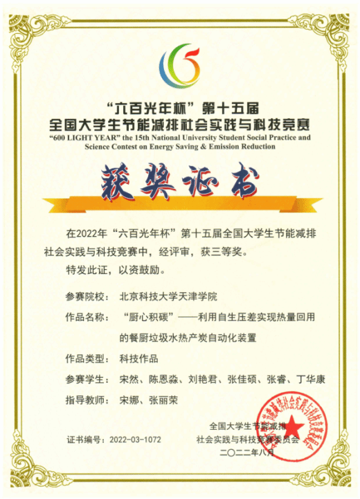 “六百光年杯”第十五屆全國大學(xué)生節(jié)能減排社會實(shí)踐與科技競賽決賽于8月2日至5日在天津大學(xué)舉辦。在疫情防控不能返校備賽的情況下,金沙城js93線路檢測中心宋娜、張麗榮、王萬清、吳宏玉、梁寶瑞、劉俊杰、徐水洋、郭雅娟老師指導(dǎo)學(xué)生,克服一切困難,緊張有序的準(zhǔn)備比賽,繼2019年—2021年先后榮獲全國二等獎(jiǎng)1項(xiàng)、三等獎(jiǎng)6項(xiàng)佳績后,今年又獲得4項(xiàng)”全國三等獎(jiǎng)”的好成績,并榮獲優(yōu)秀組織獎(jiǎng)。