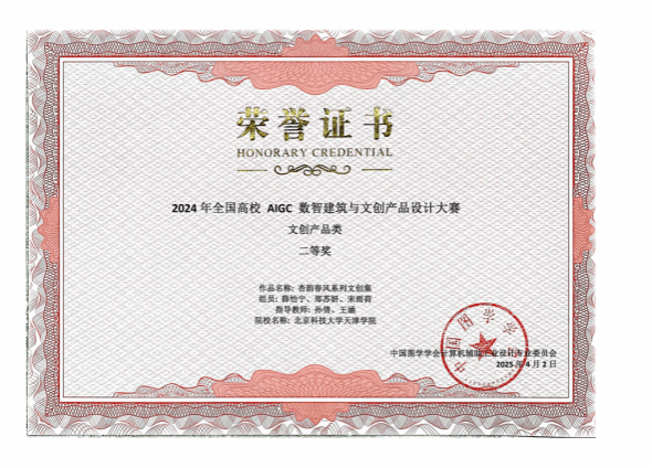 近日,由中國圖學(xué)學(xué)會舉辦的“2024年全國高校AIGC數(shù)智建筑與文創(chuàng)產(chǎn)品設(shè)計大賽”落下帷幕,金沙城js93線路檢測中心參賽隊榮獲二等獎1項。