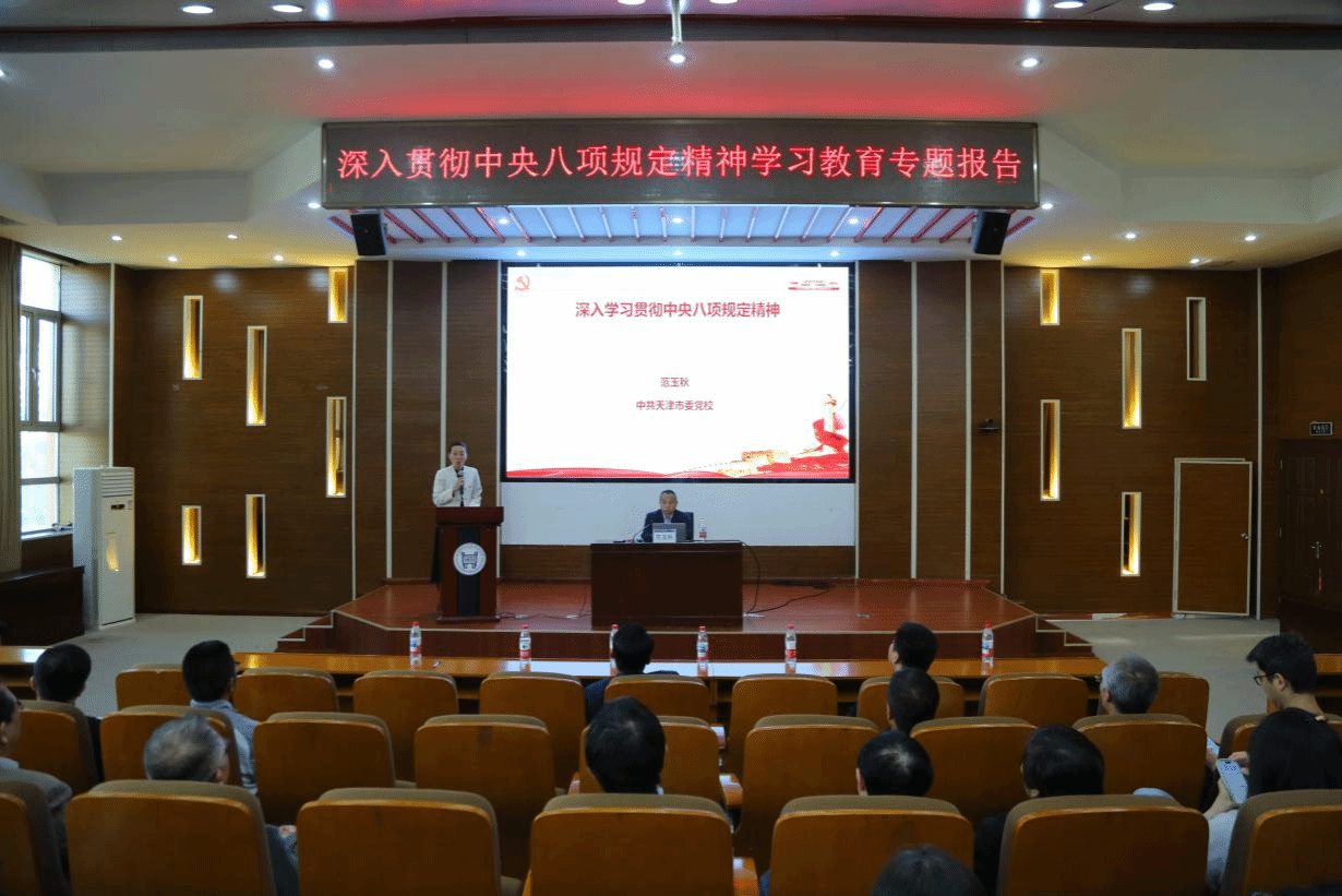 為扎實推動學校深入貫徹中央八項規定精神學習教育走深走實,4月27日,金沙城js93線路檢測中心邀請中共天津市委黨校范玉秋教授,以《深入學習貫徹中央八項規定精神》為題,作專題輔導報告。學院領導班子成員,全體科級及以上干部,全體黨...