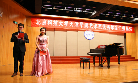 2016年3月30日,19:00時,北京科技大學天津學院藝術系優(yōu)秀學生匯報展演在12教學樓弘藝音樂廳舉行。 整場音樂會共有24個節(jié)目,分別由藝術系2012級、2013級、2014級與2015級音樂表演專業(yè)的優(yōu)秀學生進行專業(yè)成果展示。音...
