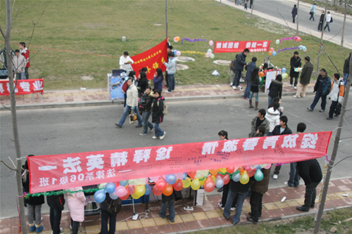 為了宣傳先進、學(xué)習(xí)先進,增進各班級之間的相互交流,促進校風(fēng)學(xué)風(fēng)建設(shè),11月22日中午,2006—2007學(xué)年度優(yōu)秀班集體形象展示活動在學(xué)院學(xué)生活動區(qū)隆重舉行。17個團結(jié)奮進的班級在這個黃葉鋪地的季節(jié)清點收獲,以個性...